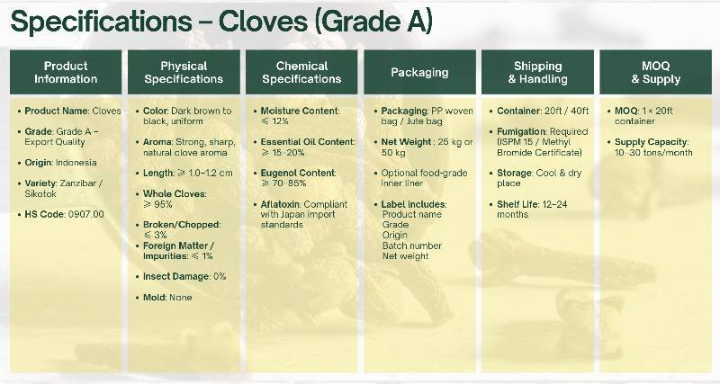 Indonesian cloves are globally recognized for their strong aroma and high essential oil content. Our cloves are carefully sorted and dried to maintain their quality and purity.