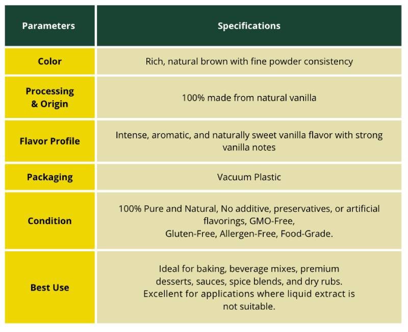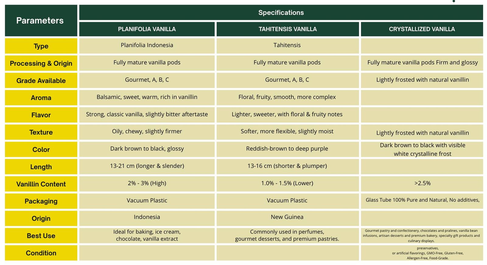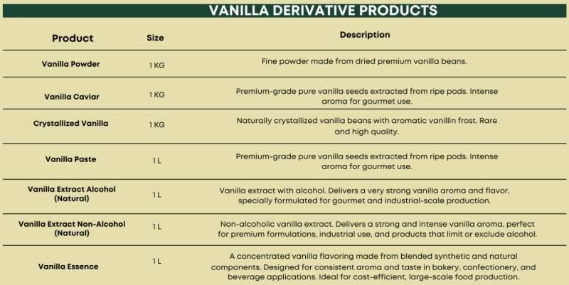 Indonesian vanilla is known for its rich aroma and premium quality. Our vanilla beans are carefully sourced from selected farms and processed through controlled drying to preserve their natural flavor and oil content.